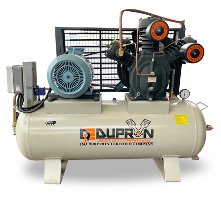 Dupron Company is manufactures, supplies and experts in FULLY AIR COOL HIGH PRESSURE AIR COMPRESSOR breathing air compressors and services in india. FULLY AIR COOL HIGH PRESSURE AIR COMPRESSOR pressure more and more air into a storage space tank, increasing the pressure. When tank force reaches its upper limit the air compressor shuts off. The power contained in the compacted air can be applied for a range of applications. These Air Compressors are ideal for sand blasting & other pneumatic application where huge quantity of air required at less pressure