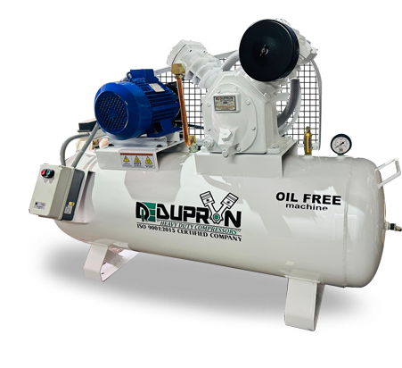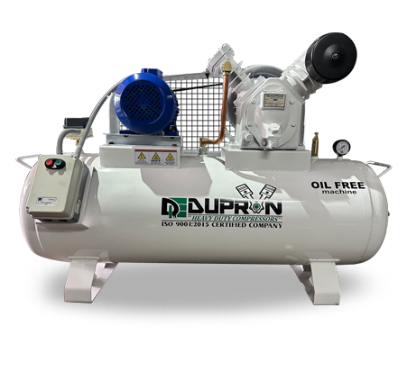 Dupron Oil Free Reciprocating Air Compressor are 100% Oil Free quality air has prompted Dupron to come out with totally engineered, tested and high performance range of compessors. To ensure the product quality in the production of PET bottles, containers for home care / cosmetic products, food products, pharmaceutical products, usage in aeronautics, turbine & hydraulic circuit pressurizing & pharmaceutical industries