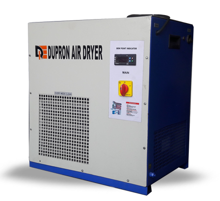 Dupron Refrigerated air dryers are the most advanced and cheapest mode of drying compressed air. This dryer operates on the principle that cooling of the compressed air. causes condensation of water carried by the compressed air in vapour form. In the refrigerated type of air dryer the cooling takes place in two stages.